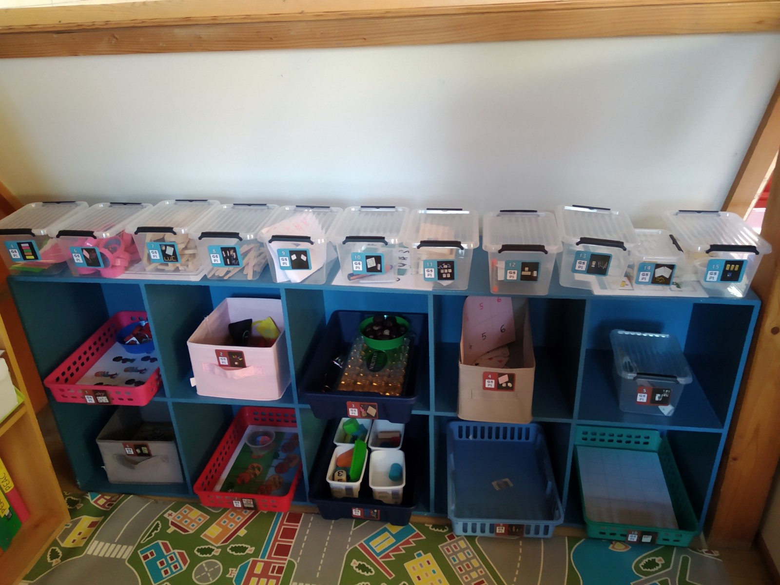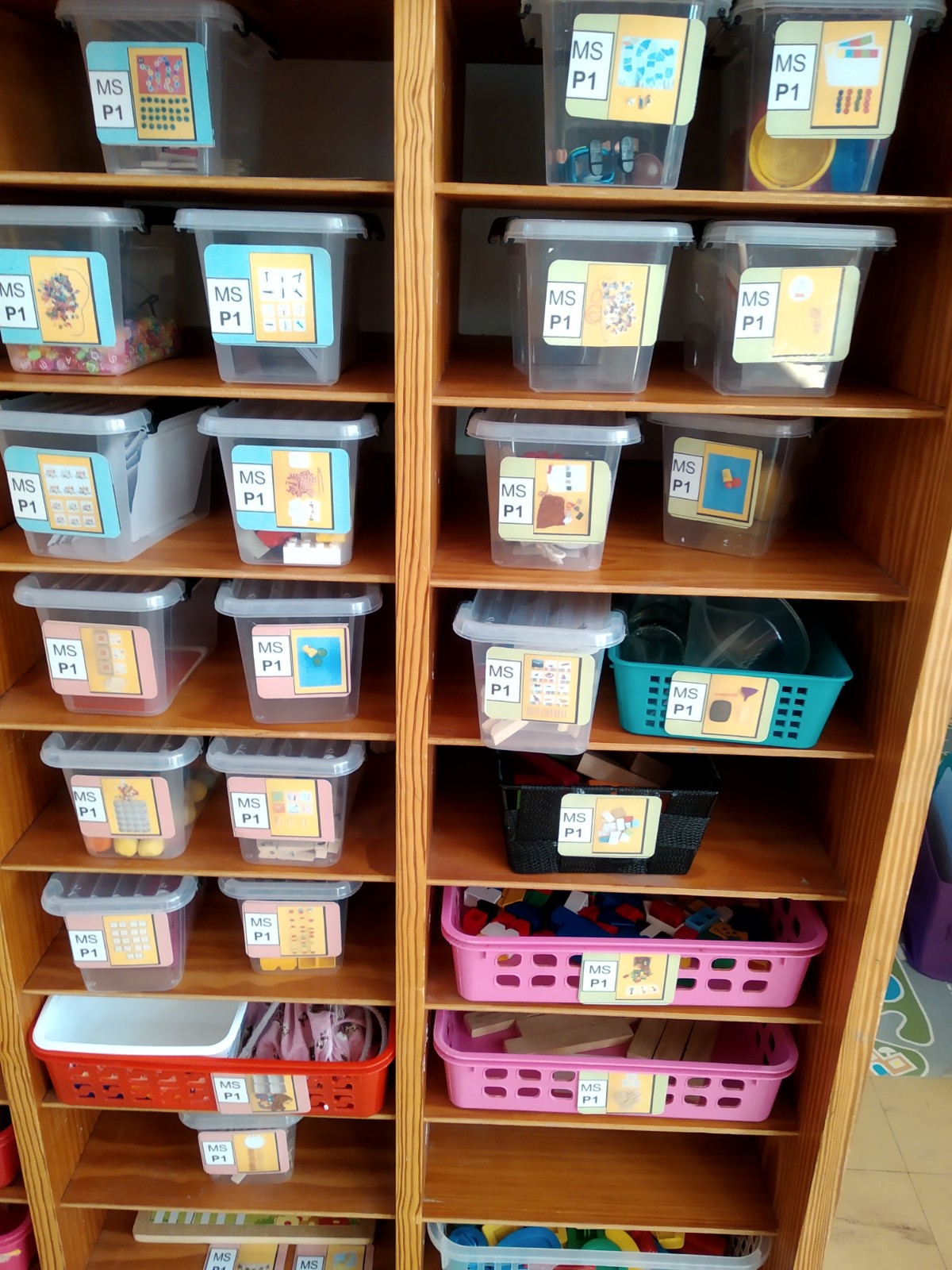Après qq heures passées dans ma classe, je suis enfin parvenue à mettre en place mes 85 ateliers ! 50 pour les GS et 35 pour mes MS !